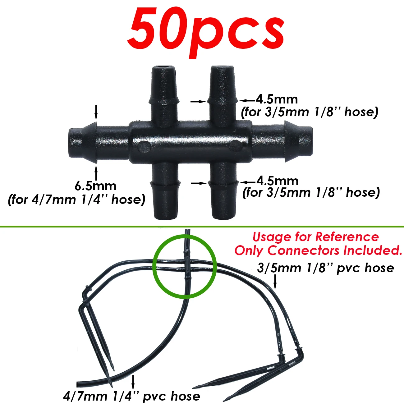 KESLA Garten-Tropfbewässerungssprinkler, 1/8 Zoll, 4-Wege-Wasserrohranschluss, 4/7 mm bis 3/5 mm Schlauchbiegung, Pfeilemitter, Bewässerungstropfer