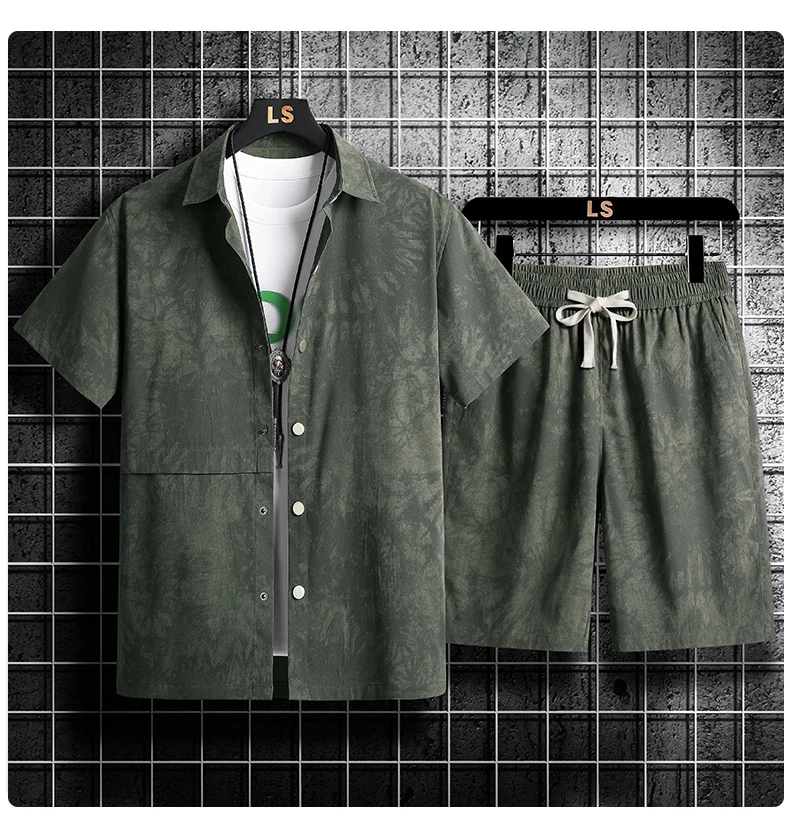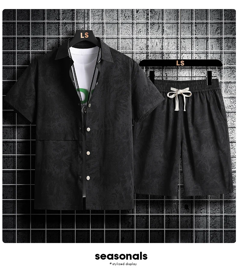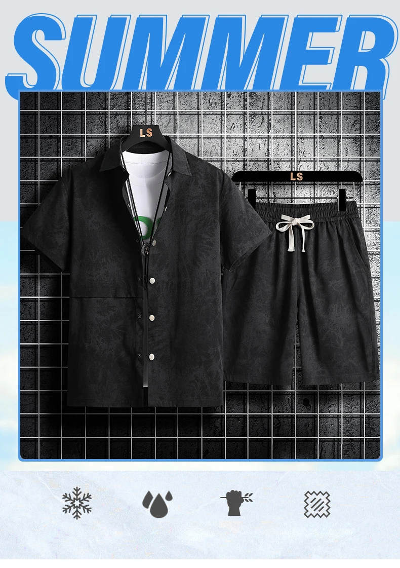 Materialzusammensetzung : Neues Sommer-Herren-Kurzarm-Shirt-Set im Hawaii-Stil, Freizeithemd und
