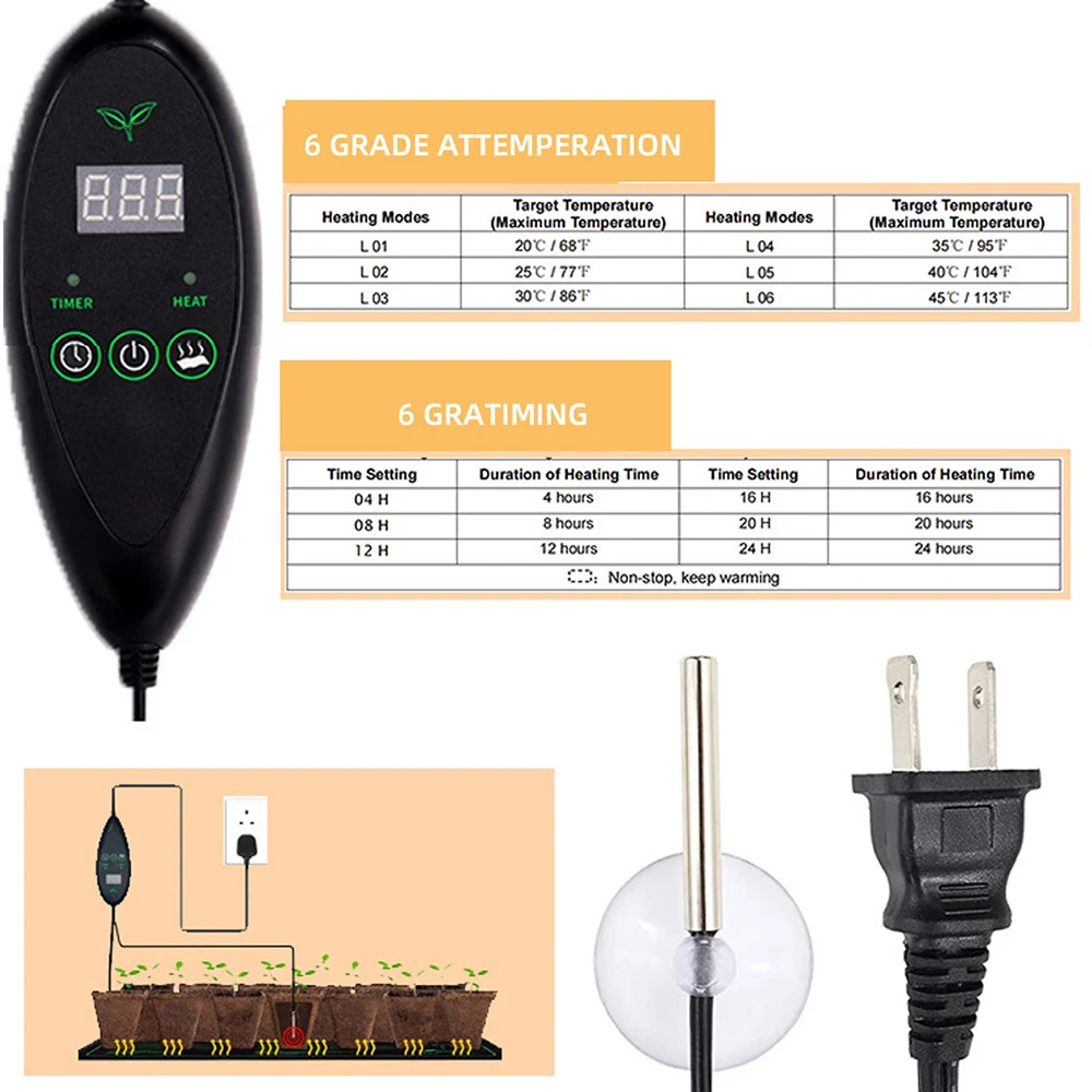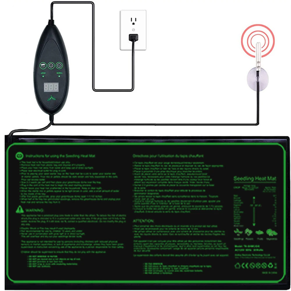 Insgesamt 2 Teile, 1 Stück 10x20,75 Zoll Saat-Heizmatte und 1 Stück digitaler Thermostatregler, die in Kombination verwendet werden, damit Pflanzensamen besser sprießen und wachsen können