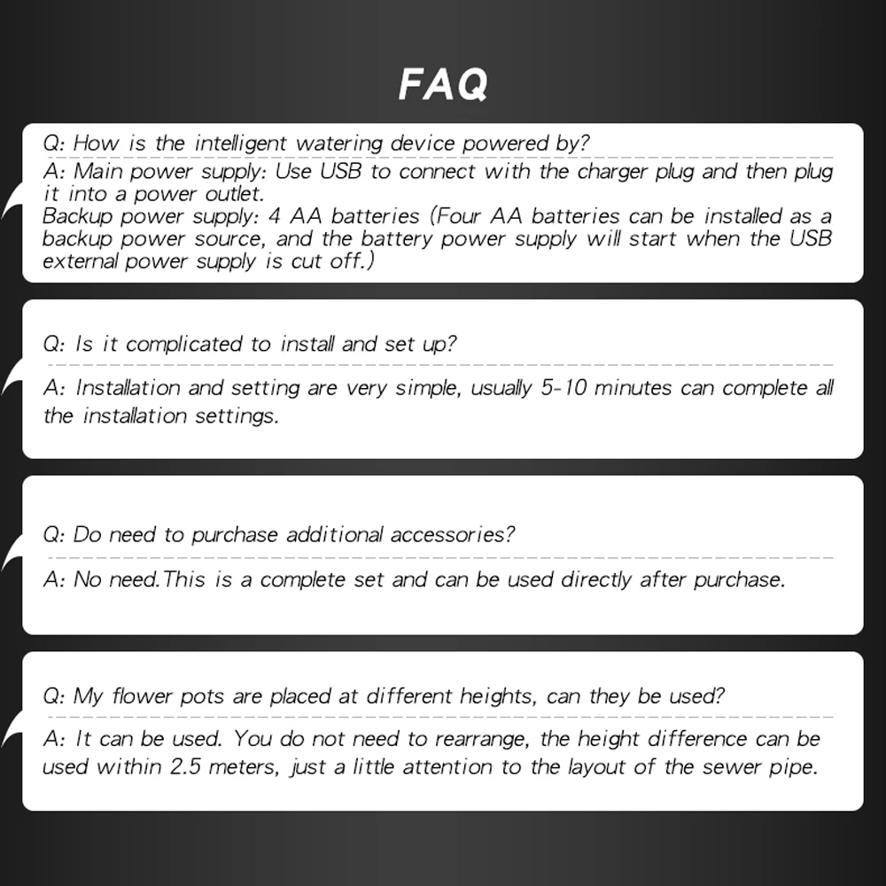 Bequem und praktisch: Wird mit komplettem Zubehör geliefert, ist einfach zu montieren und zu verwenden, sodass Sie schnell Ihr eigenes Bewässerungssystem aufbauen können. Mit einem Bewässerungsset können Sie 15 oder 20 Pflanzentöpfe bewässern.