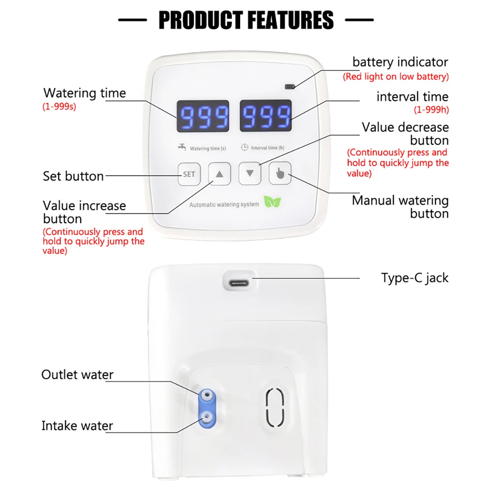 Automatische Bewässerung: Intelligentes Bewässerungsgerät, das Topfpflanzen regelmäßig und ausreichend bewässern kann, sodass Sie sich auch im Urlaub oder unterwegs keine Sorgen um unbemannte Bewässerung machen müssen.
