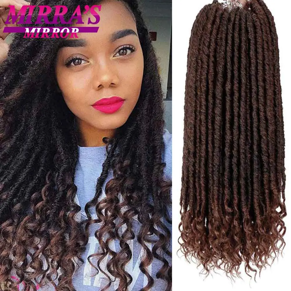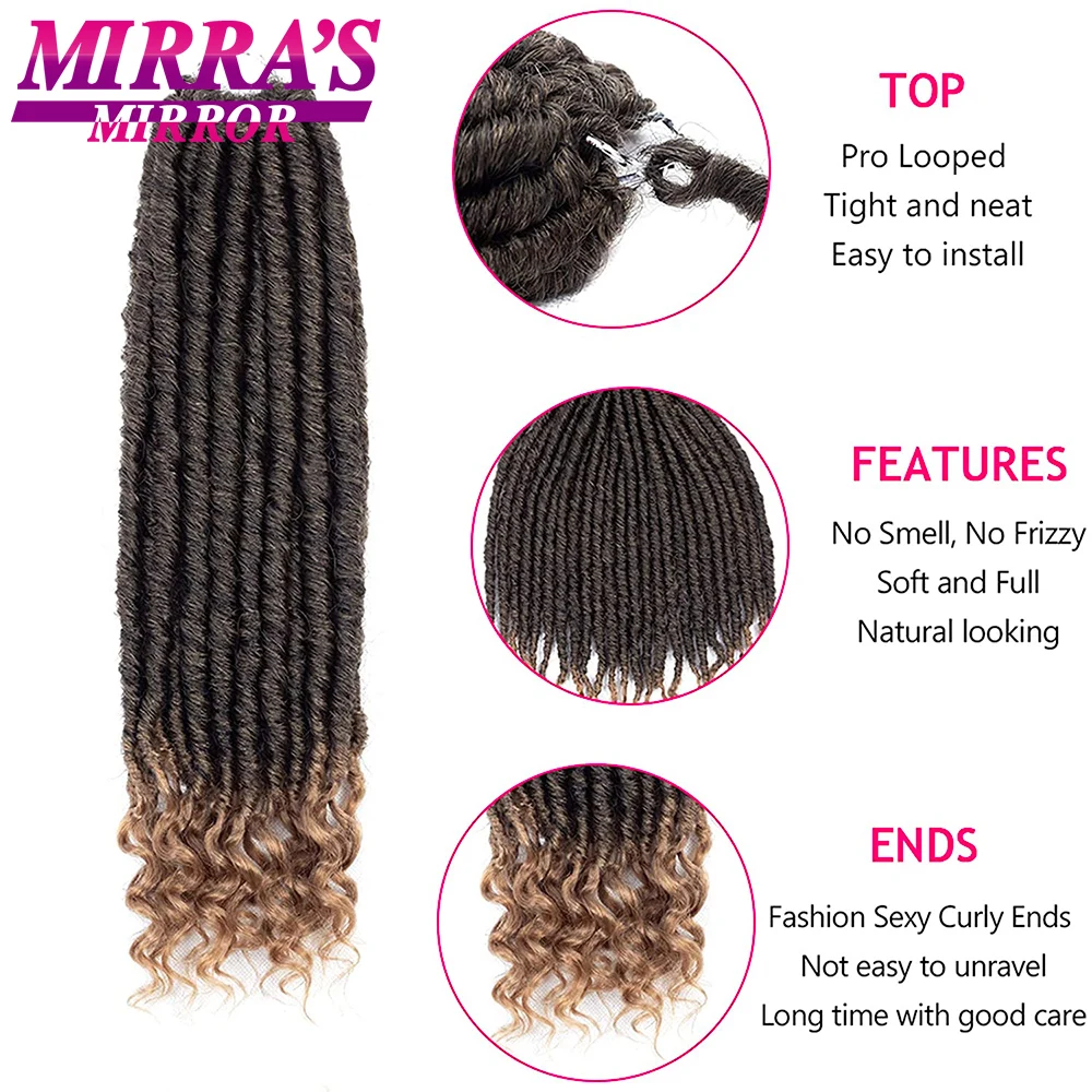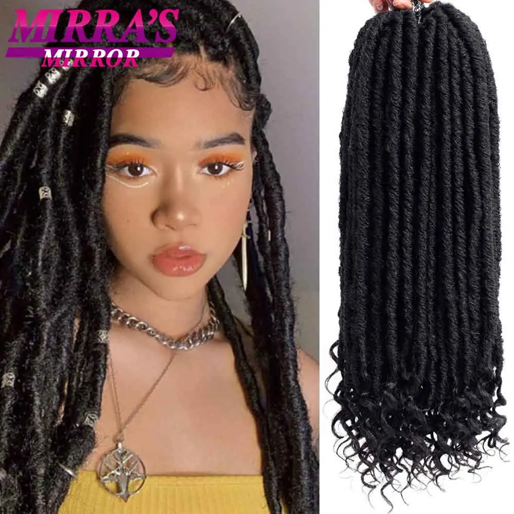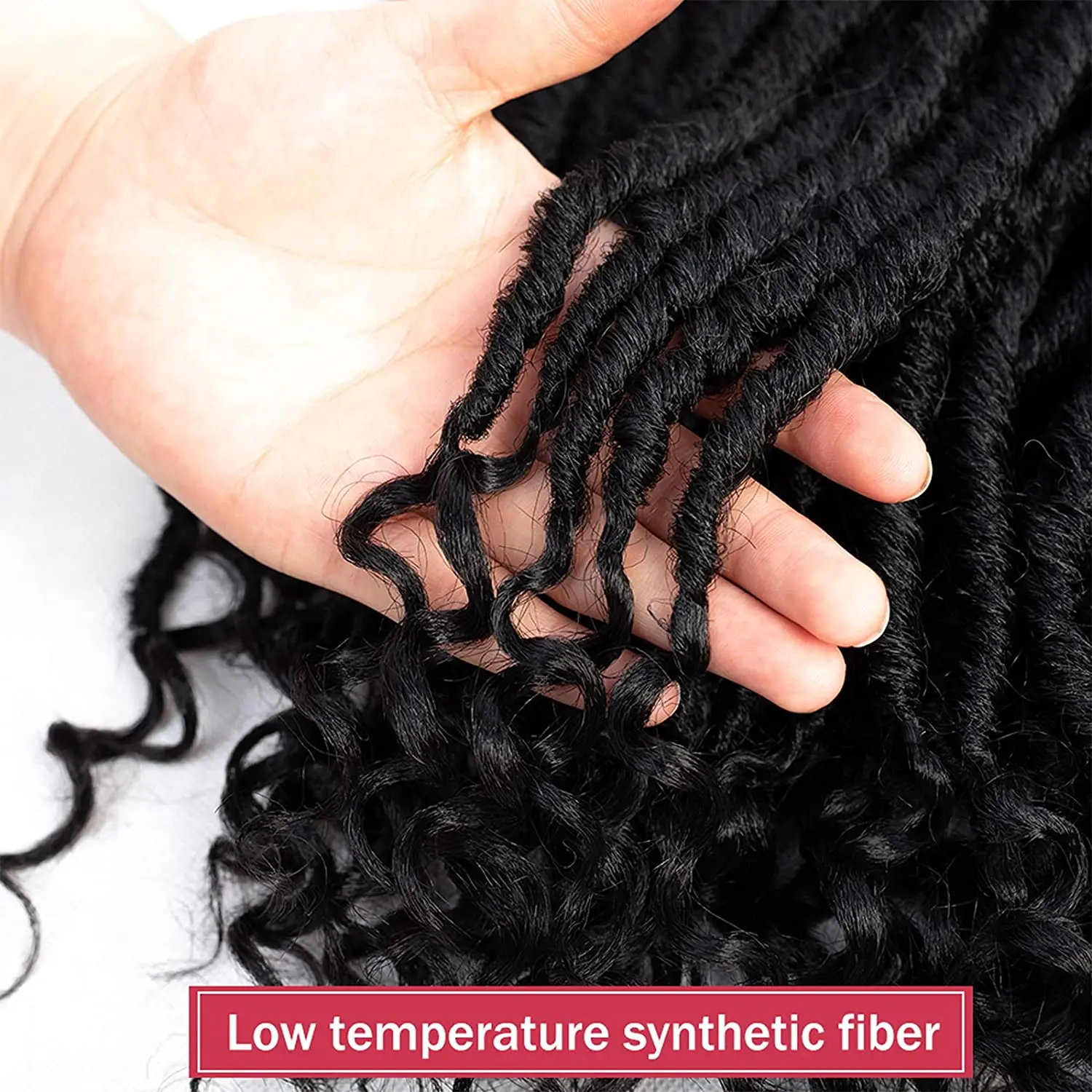 ★Material: fibra sintética 100 % de alta calidad. Extensiones de cabello sintético con rastas de diosa, rastas de diosa rectas, extensiones de cabello sintético suave con extremos rizados, trenzas de cabello de crochet pre-enrolladas.