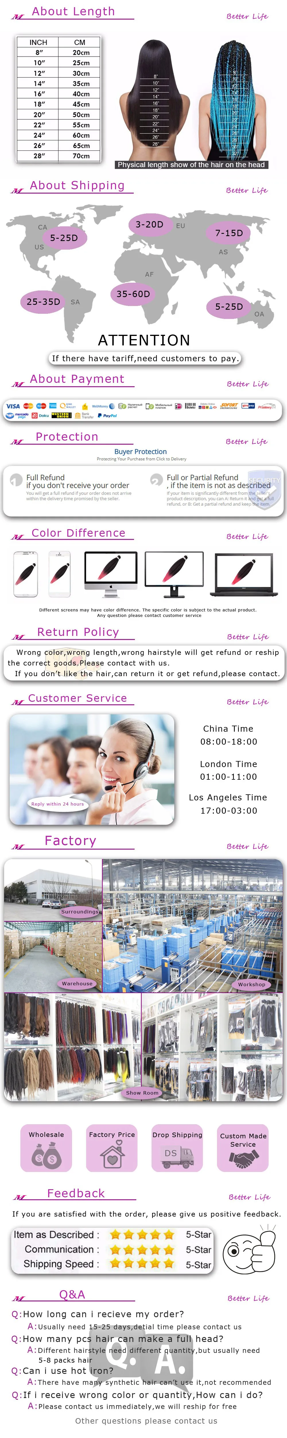 ★Información del producto: 14 pulgadas/80 g/24 hebras/paquete. 20 pulgadas/100 g/24 hebras/paquete, 6 paquetes normales forman una cabeza completa.